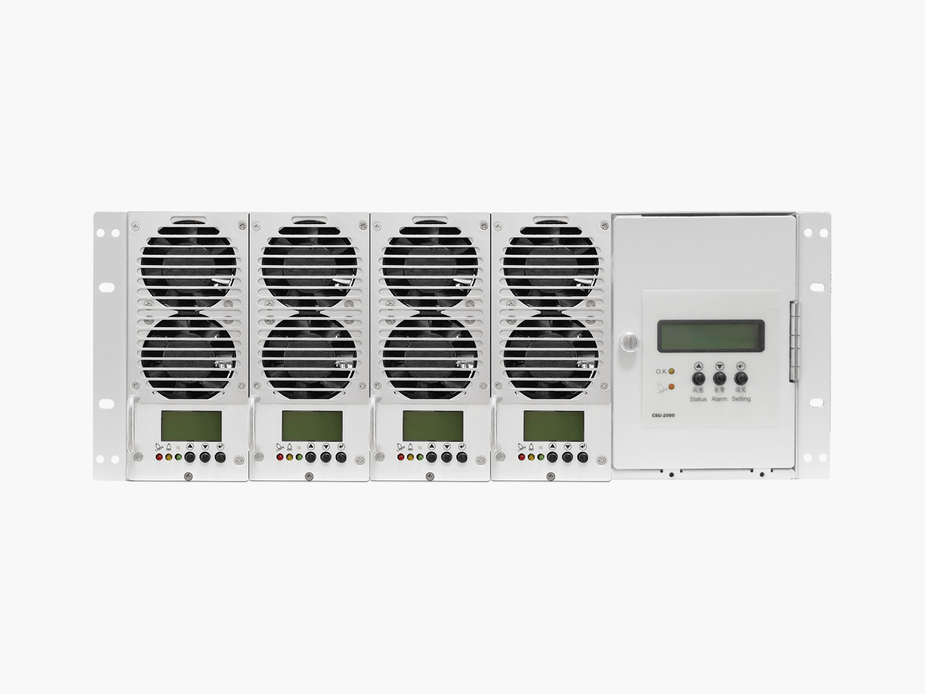 虹碩科技交換式直流供電設備組成之直流供電系統,提供穩定可靠不中斷之直流電源,供應電信機房之直流通信設備等使用。系統採用 N+1 配置,在結構上採用模組化設計,可活電插拔。易於安裝,擴充與維護。本系統設備由交換式充電機、CZ1型系統控制及監視單元、交流輸入無熔線斷路器負載開關、蓄電池開關等部份組成。負載開關及監控部份,備有許多的分路供用戶選用及分配內部使用。